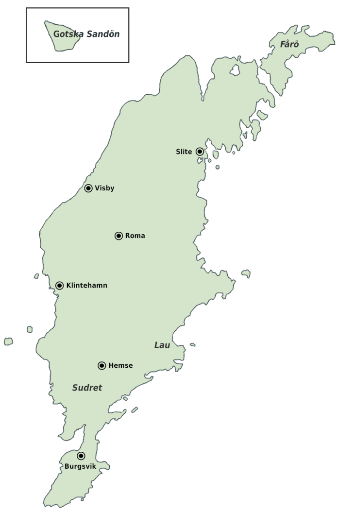 Ein runengutnischer Text findet sich zum Beispiel auf dem Pilgårdssten nahe dem Ort Bunge: